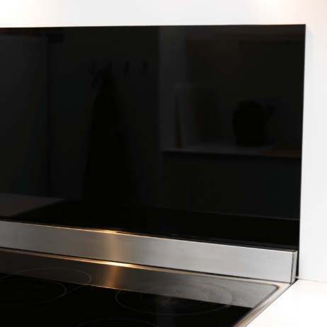 Magnetisk stænkplade i hærdet glas. 100 x 50 cm. Sort.