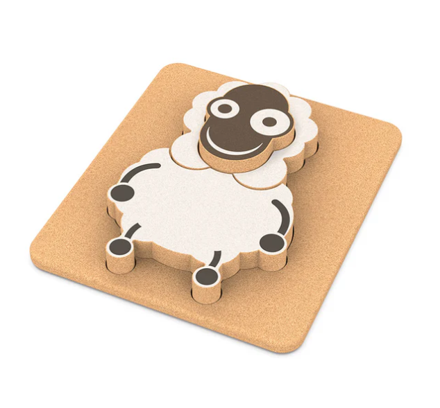 Økologisk og bæredygtigt 3D puslespil i kork, som udfordrer barnets hånd-øje koordination.