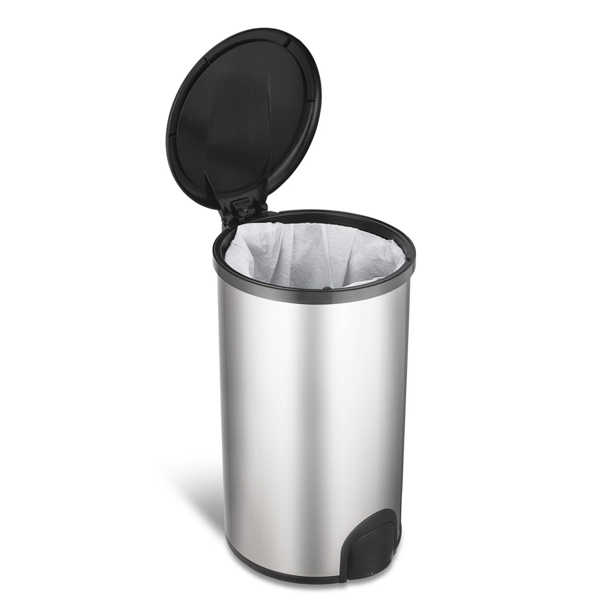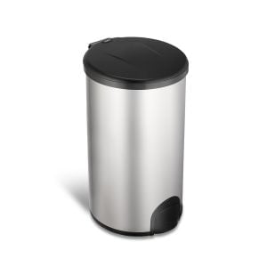 Berøringsfri affaldsspand på 45 L i rustfri stål med sort låg. Ydremål H: 60,8 cm, B: 39,6 cm, D: 34,0 cm. Bruger 3 stk. C batterier, som ikke medfølger.