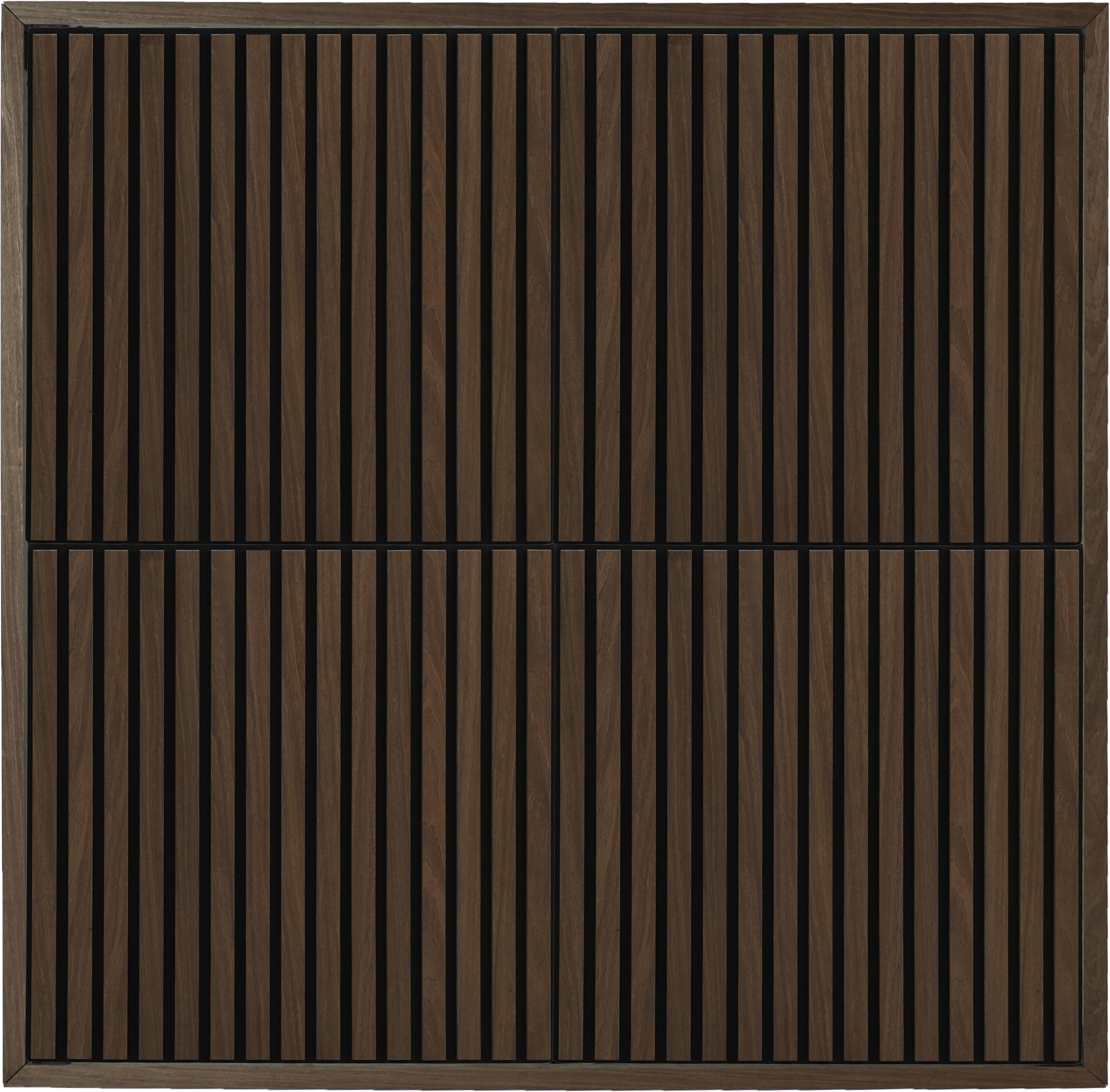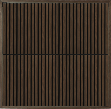 Akustikramme i valnød med 4 akustik felter. Skab dit helt eget motiv ved med vores akustikramme, som passer til akustikpaneler på 600×600 mm. Kan drejes og vendes som man har lyst til.