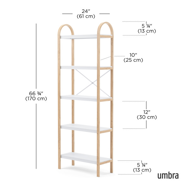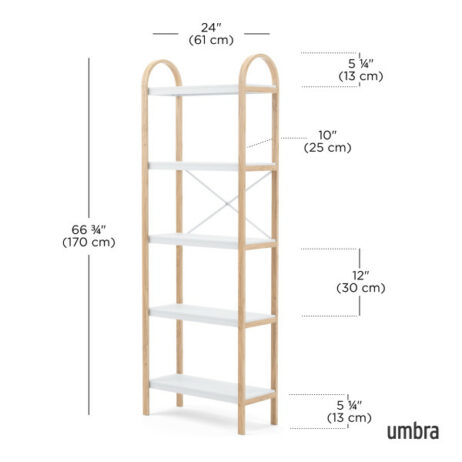 En del af Bellwood-familien: Bellwood fritstående hylde er en del af Umbras Bellwood-kollektion inklusive et matchende sidebord, væghylde, sofabord, opbevaringsbord, paraplystativ og mere