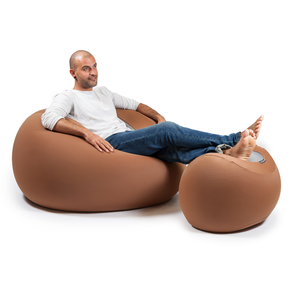Denne hyggelige sækkestol med fodskammel er fantastisk til en afslappende stund alene eller med en du holder af.
