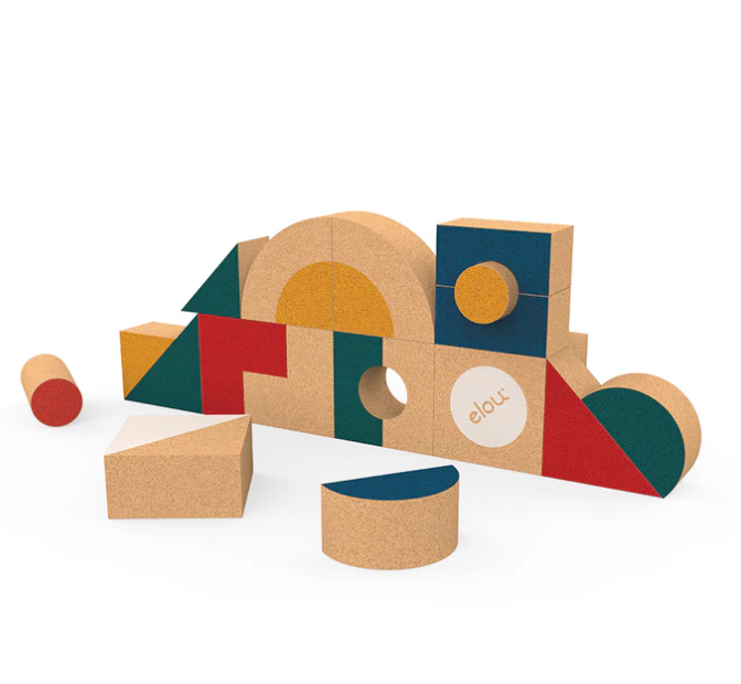 Disse byggeklodser i økologisk farvet kork introducer småbørn til grundlæggende geometriske former og fremme deres motoriske udvikling.