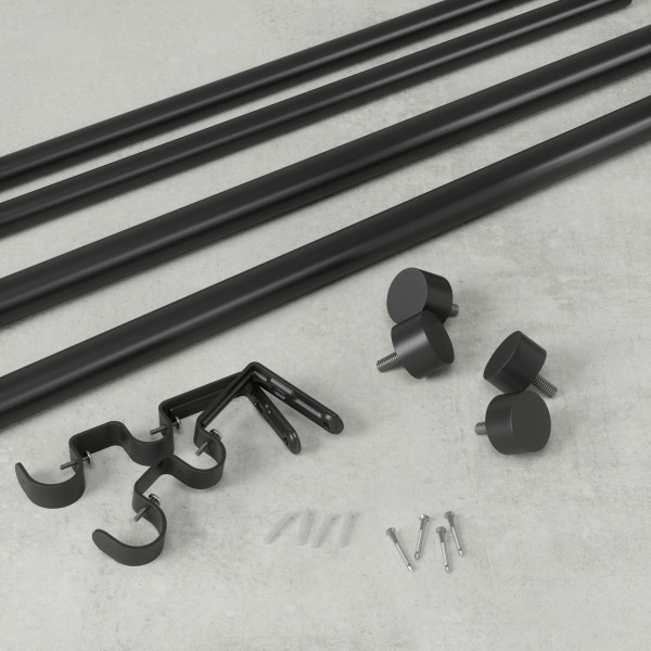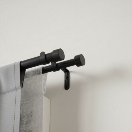 Denne elegante stang holder ikke kun dine gardiner sikkert på plads, men tilføjer også et moderne touch til din indretning, og med den dobbelte stang gøres det let at lagdele gardinerne for et mere tilpasset udseende, uanset om du sigter efter elegance eller øget privatliv.