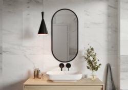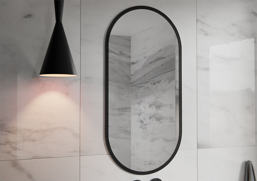Vores spejl er skabt med omhu og er lavet af materialer af højeste kvalitet, hvilket sikrer lang levetid og et tidløst æstetisk udseende. Den dybe sorte farve tilføjer karakter til spejlet og gør det til et dekorativt element såvel som en funktionel. Det kan passe ind i forskellige interiører, lige fra badeværelser og stuer til entreen, garderoben eller en butik.