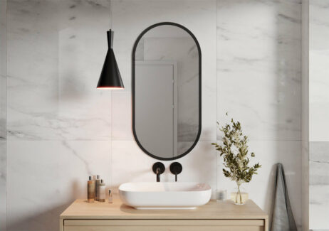 Spejlet fås i flere størrelser med en præcision på +/- 4 mm, og dets 4 mm tykke spejlpanel giver det en delikat lethed, samtidig med at det er utroligt holdbart. Du kan hænge det op både lodret og vandret takket være de solide kroge, der følger med.