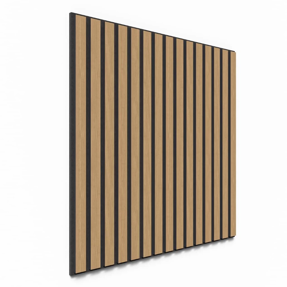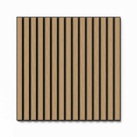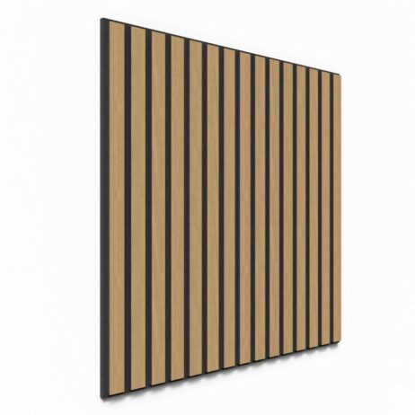 Kvalitets akustikpanel i ubehandlet eg til billig pris. Produktet er som mange andre en polyesterfilt med lameller skudt på. Lamellerne er sort gennemfarvet MDF med ege finer på fronten. Akustikpanelet tilbyder effektiv lydabsorption og et stilfuldt design. Perfekt til at at forbedre både lydkvalitet og æstetik i dit rum. Panelerne kan bruges både på væg og loft, hvilket gør dem alsidige og perfekte til både private hjem og professionelle miljøer.