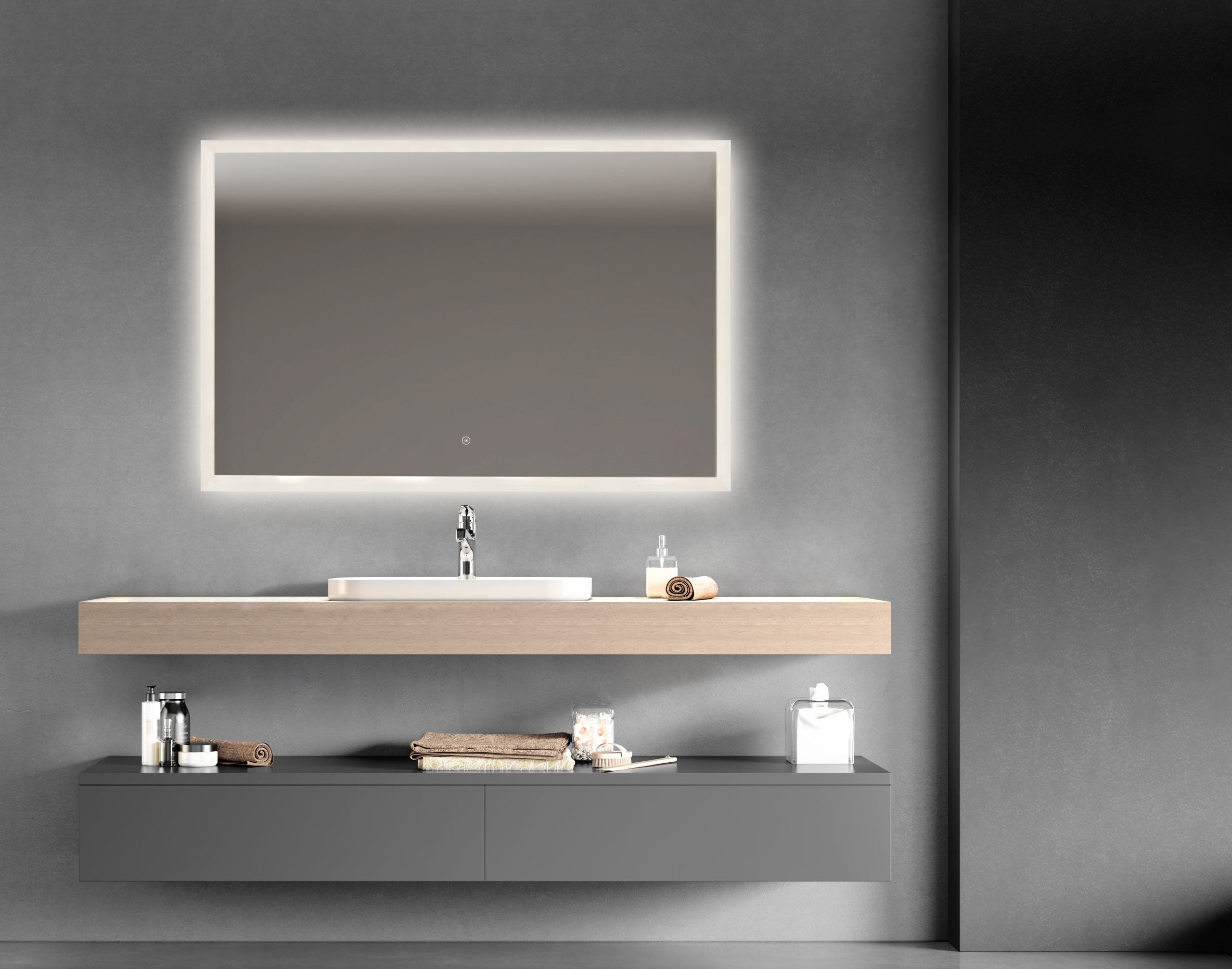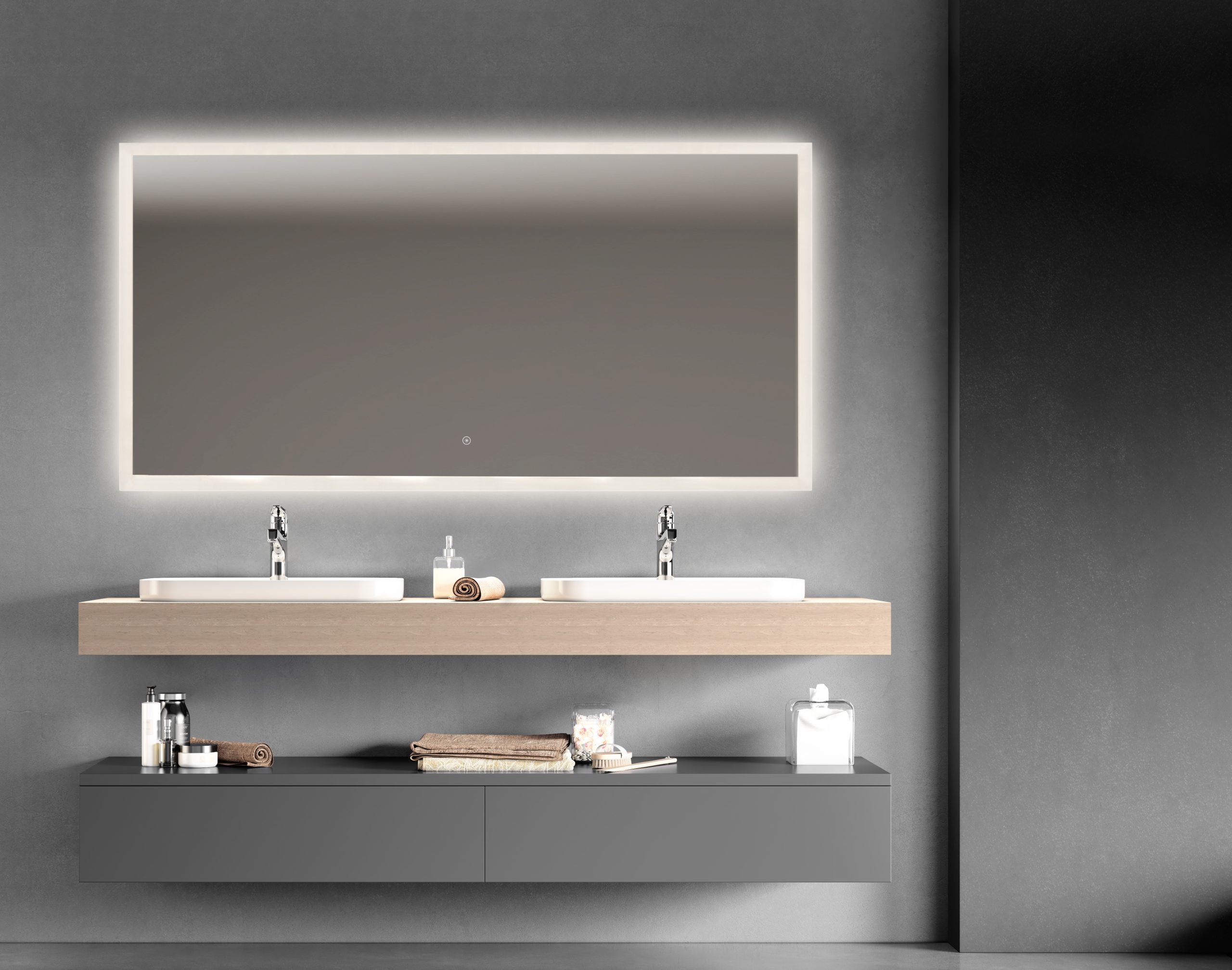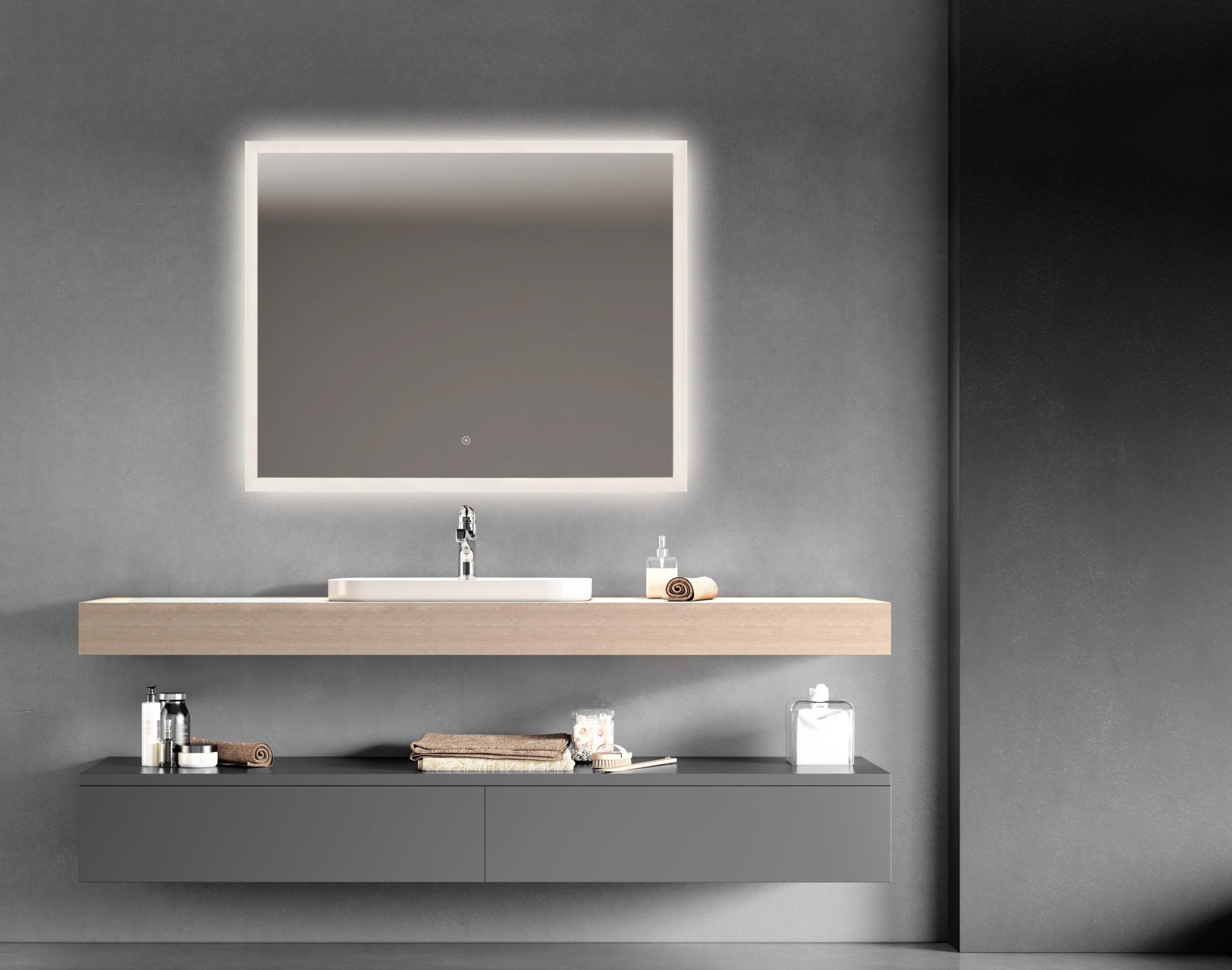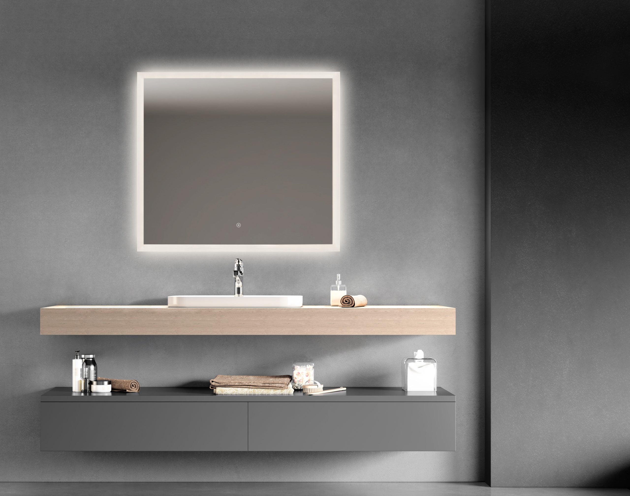 • Firkantet LED-spejl med frontlight & backlight
