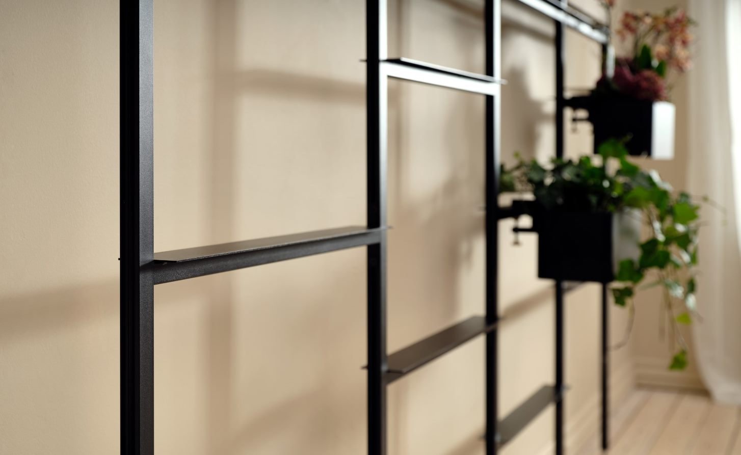 Extend Ceiling Mounted er med til at forlænge rummet i højden samt skabe et rum til privatliv eller modsat; et rum til videndeling. Den loftmonteret model af Extend, er ideel til afskærmning op imod gangarealer, i receptionen eller kantinen. Systemet kan desuden benyttes til akustiske afskærmninger mellem borde og ønskes der mere dybde til opbevaring, kan de smalle hylder skiftes ud med brede.