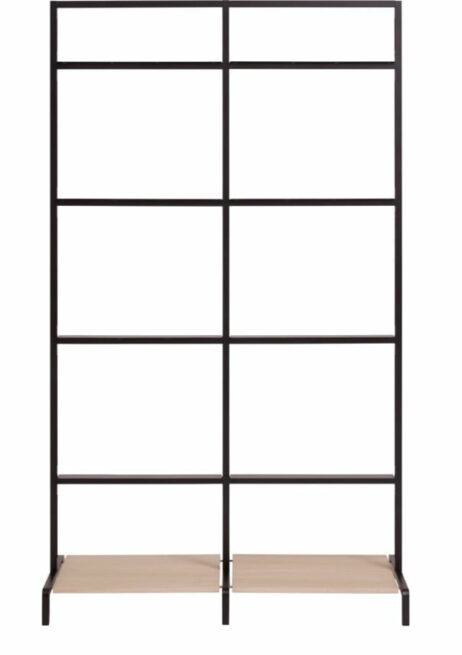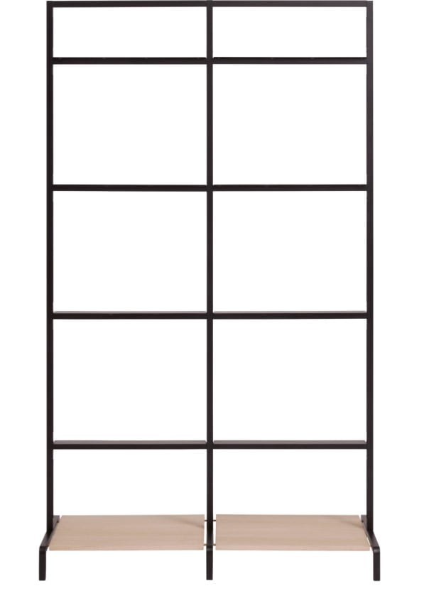 Grundmodulet består af to sektioner med dertilhørende hylder (i alt otte) samt to tophylder. Nederst er der tre ben, hvorpå der er placeret to egefinerplader. Disse holdes på plads af otte messingstænger. Derfra kan systemet bygges ud med tillægssektioner, for at opnå ønsket