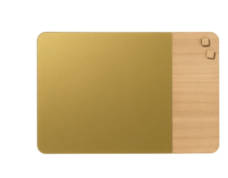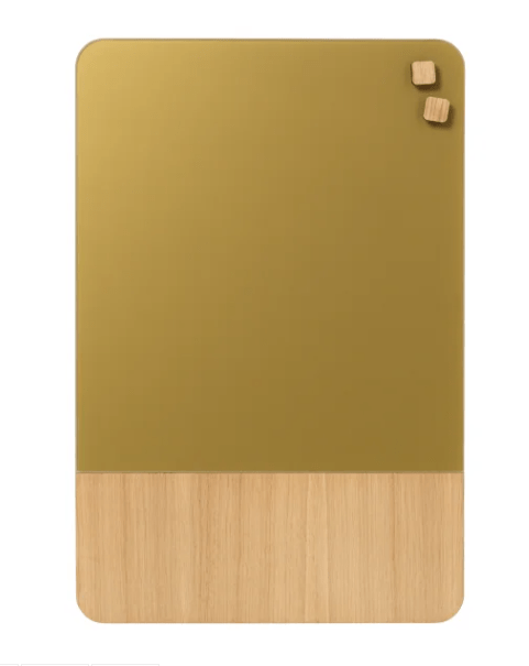 Magnetisk tavle 40 x 60 cm. Mat glas i guld og egefiner.