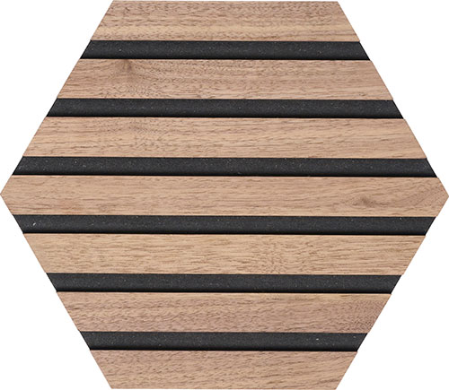 Acupanels smukke og dekorative Hexagoner er en del af vores non-acoustic linje. Brug Heksagonerne på væggen som en smuk dekorativ løsning. Du kan mikse vores forskellige træsorter, så du får lige det design, du ønsker.