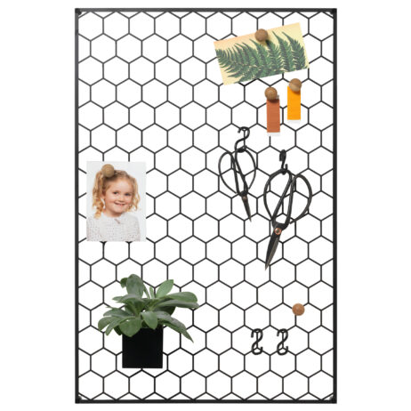 Hexagonal Gitter / Opslagstavle. Sort metal, 40 x 60 cm.