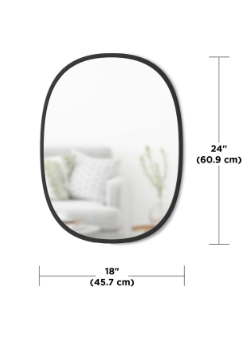 Ovalt spejl med moderne gummi kant i sort