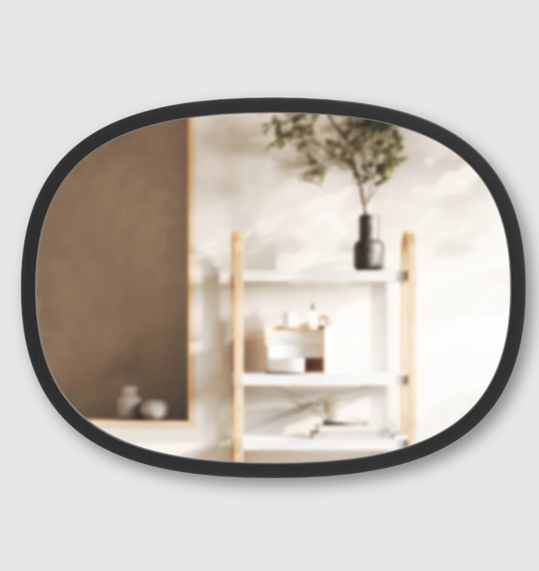 Ovalt spejl med moderne gummi kant i sort