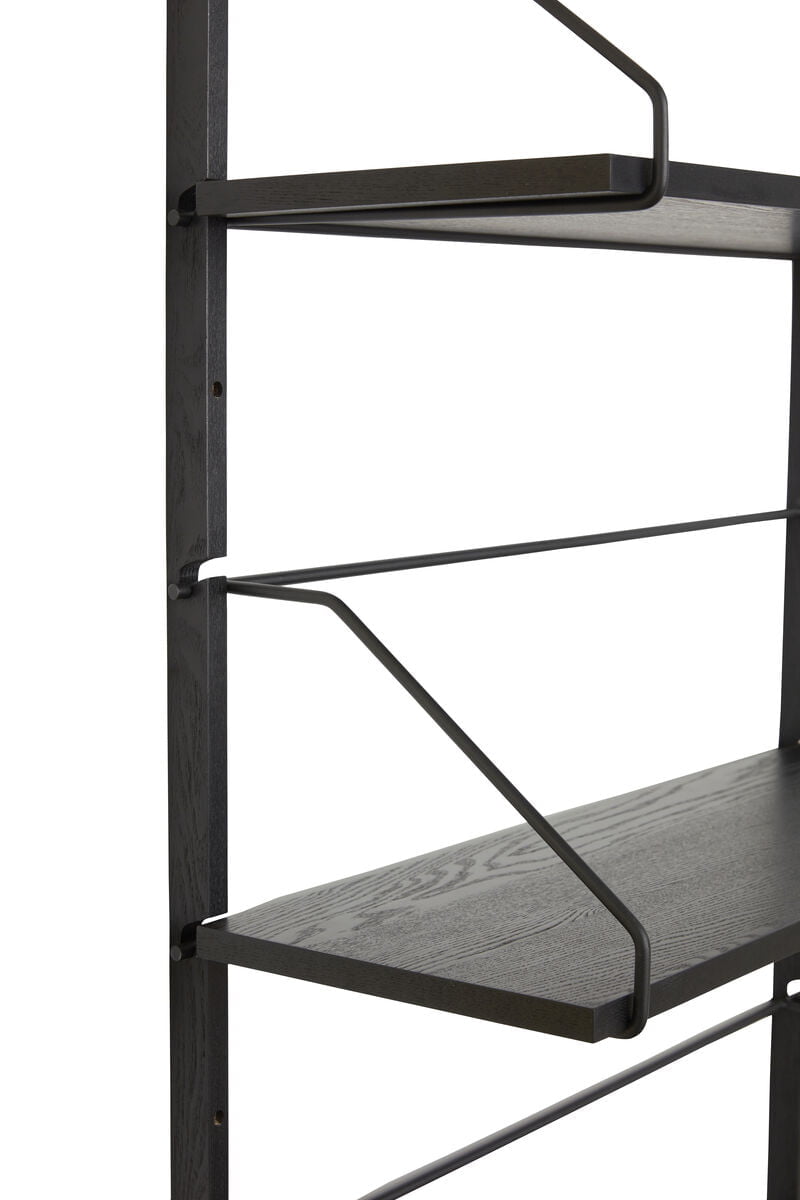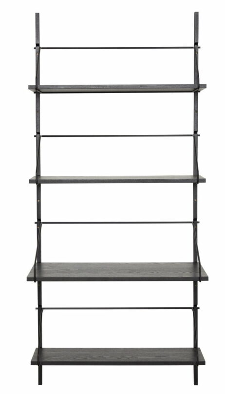 Stilren og trendy vægstativ med 4 hylder i sortmalet ask fra Hübsch.