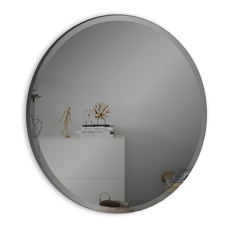 Rundt spejl i grå toner med facetslibning fra INCADO.