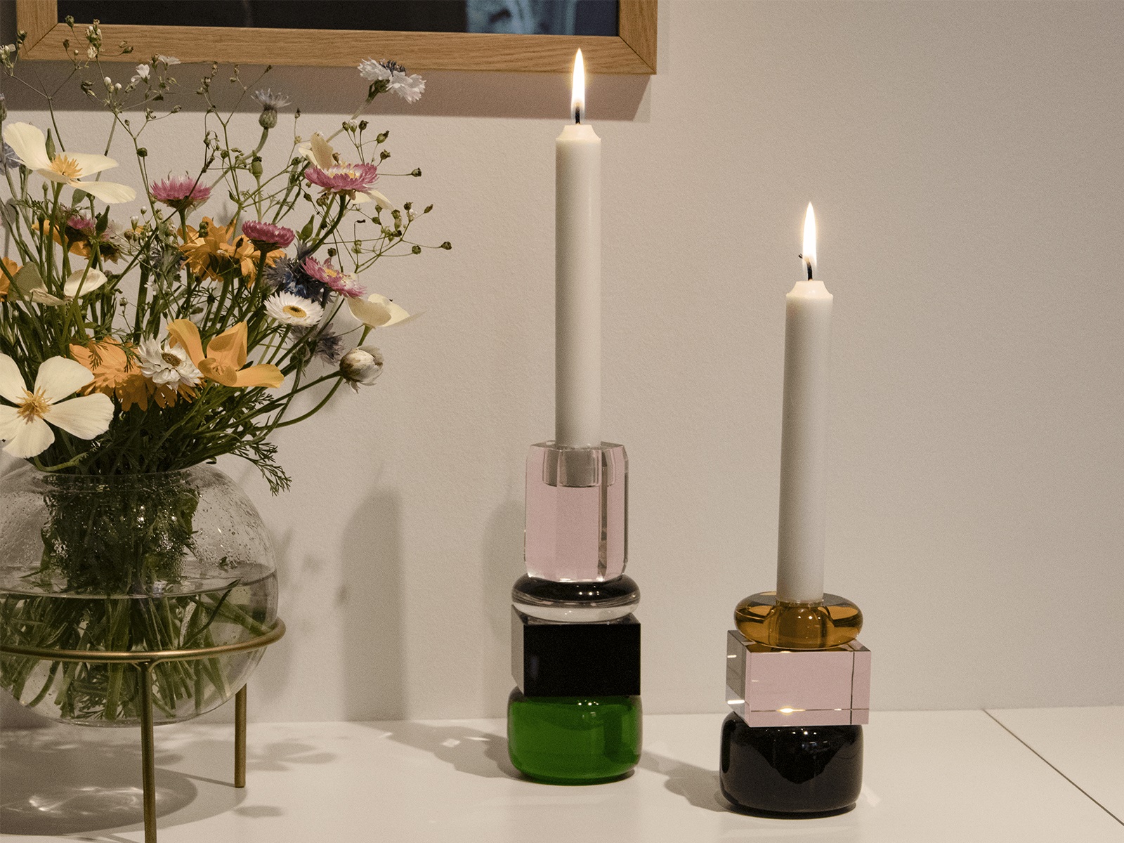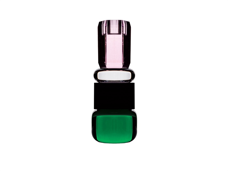 Jasmin lysestagen er en unik, håndlavet lysestage i massivt gennemfarvet glas i farverne grøn, sort, klar og lyserød. Dette farverige mesterværk er skabt med fokus på unikke former og personlighed, hvilket gør det muligt for stagen at skille sig smukt ud på egen hånd, samtidig med at den harmonerer perfekt med vores øvrige lysestager. Jasmin har en højde på 18 cm og er beregnet til stagelyse.