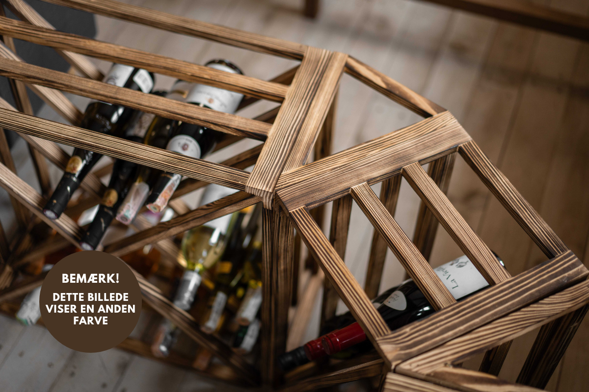 Vi garanterer, at vinreolen er produceret af bæredygtigt træ. Det er vigtigt at huske, at træ er et naturmateriale, og at der kan forekomme små knaster eller ufuldkommenheder.