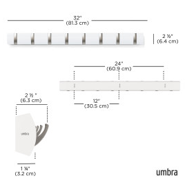 Umbra Flip er en moderne og stilren knagerække, der kombinerer praktisk funktion med et minimalistisk udtryk. Den er designet med individuelle kroge, som kan vippes ud, når de skal bruges, og foldes ind igen, når de ikke er i brug. Det giver et rent og strømlinet look, der passer perfekt ind i både entré, soveværelse, badeværelse eller kontor.