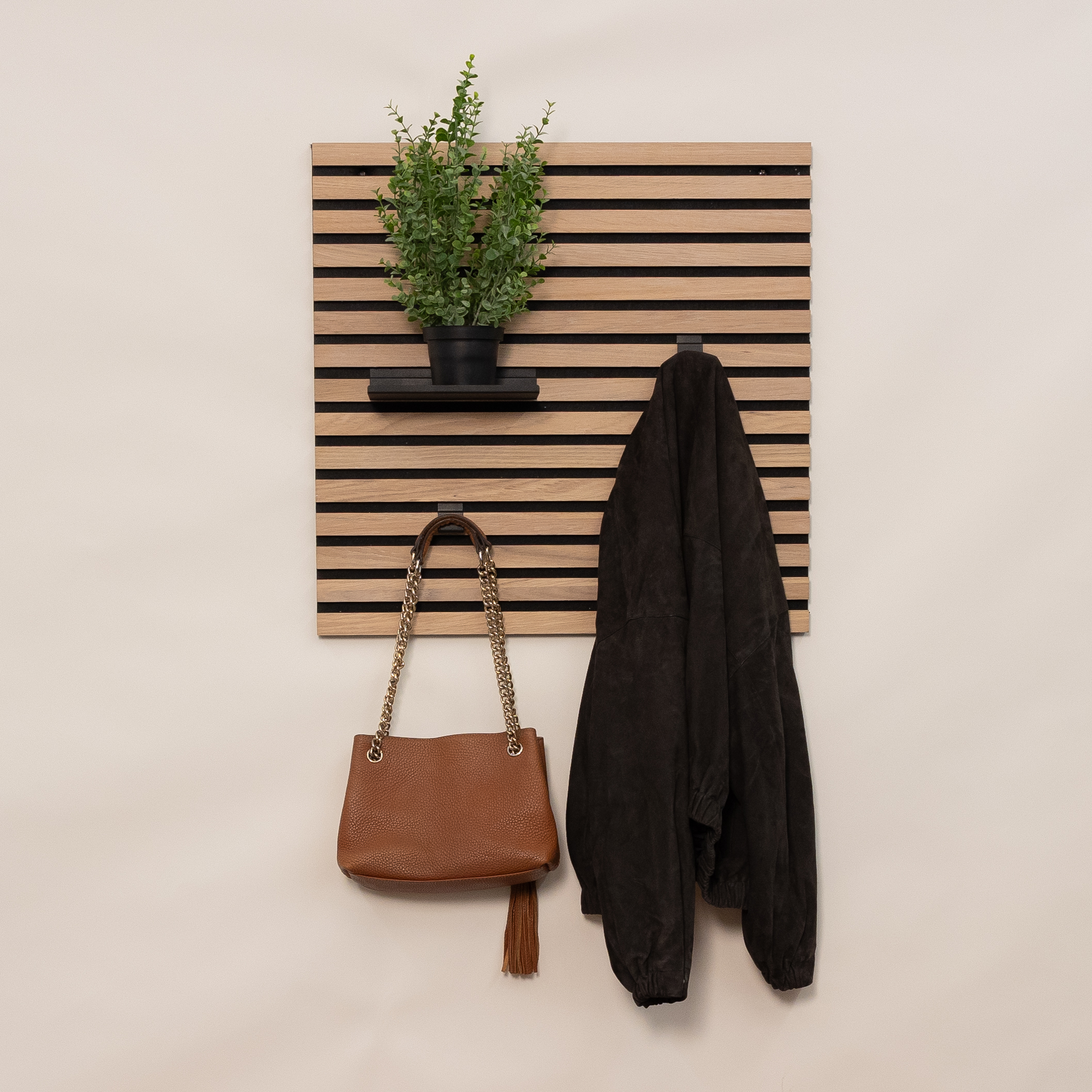 Knagene er specielt designet til at passe perfekt ind i panelet, og du kan selv vælge, hvor du ønsker at placere dem – De indsættes nemt under lamellerne.