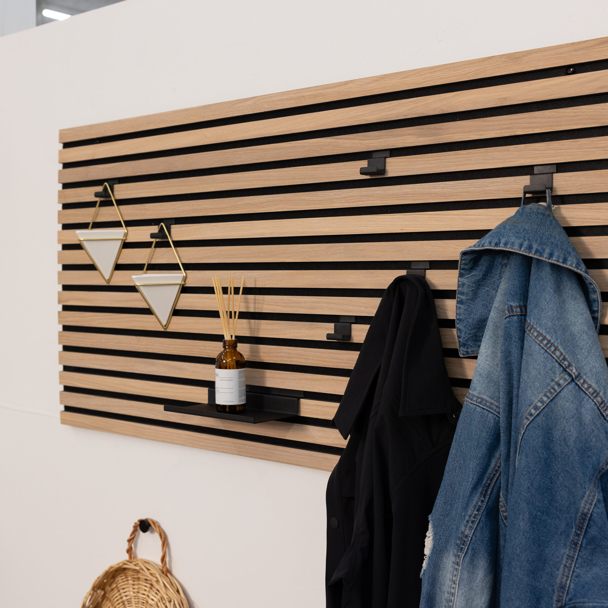 Knagene er specielt designet til at passe perfekt ind i panelet, og du kan selv vælge, hvor du ønsker at placere dem – De indsættes nemt under lamellerne.