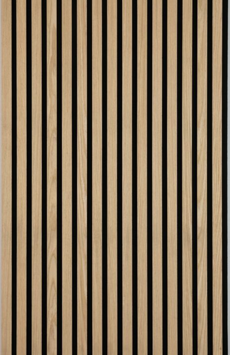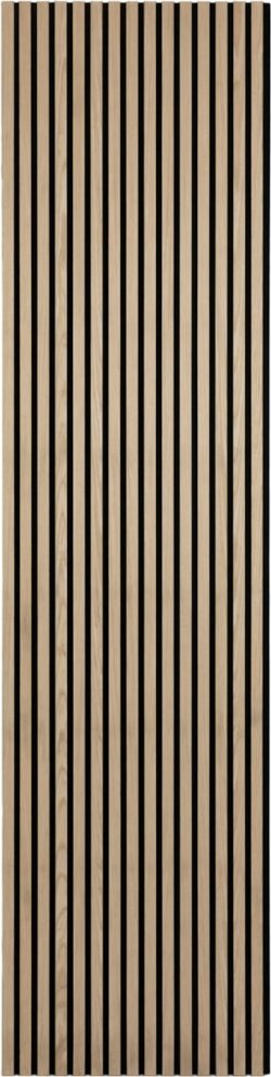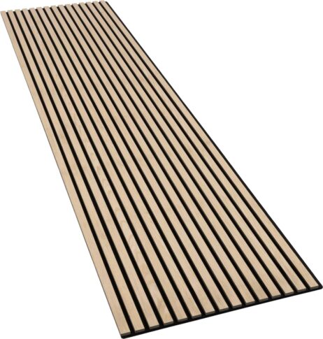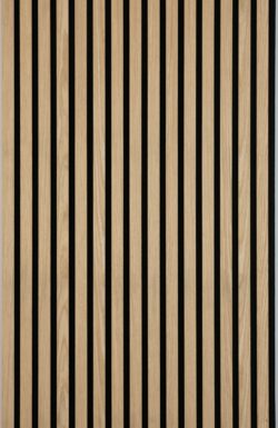 Akupanel måler 2400×600 mm, Lamellerne er monteret på den bagvedlæggende akustikfilt