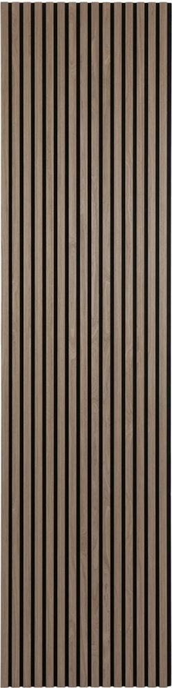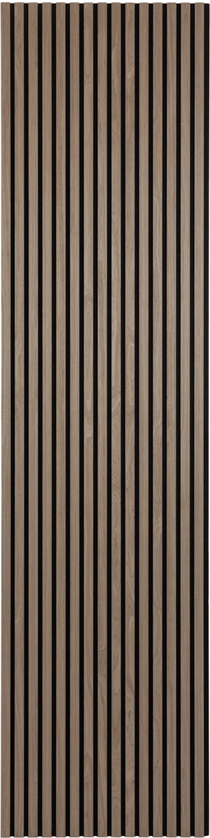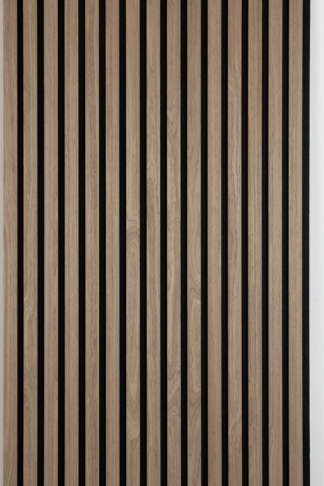 Filt: Bag lamellerne er en 8 mm special udviklet sort lydabsorbent. Det er filten på produktet her, der giver den gode akustik. Den er forholdsvis kompakt, og du kan derfor blot skrue igennem denne og ind i bagvæg eller reglar bagved ved montering.