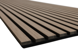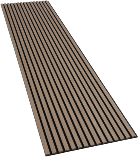 Akupanel måler 2400×600 mm, Lamellerne er monteret på den bagvedlæggende akustikfilt