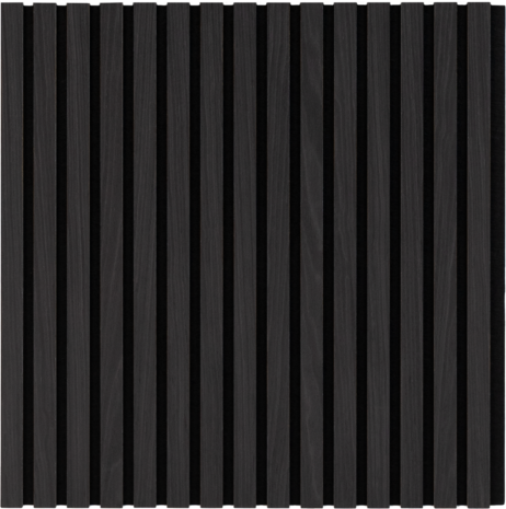 1. Elegant Design: Lamellerne er lavet af sort gennemfarvet MDF med en smuk ege finer* på fronten, der giver et moderne og stilfuldt udtryk. Den ensartede finer sikrer, at panelet ser perfekt ud, uden knaster, og kan let tilpasses med olie for en dybere farve.