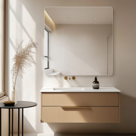 Flot firkantet spejl i 5 mm tykkelse fra Wallshop’s egen serie af spejle.