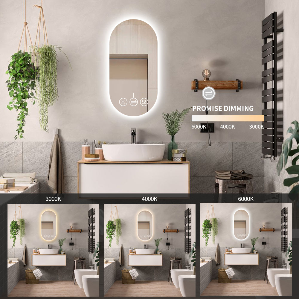 Spejlet tilkobles et lampeudtag eller tilsluttes via stikkontakt. Lyset tændes og slukkes på touchsensoren på spejlet.