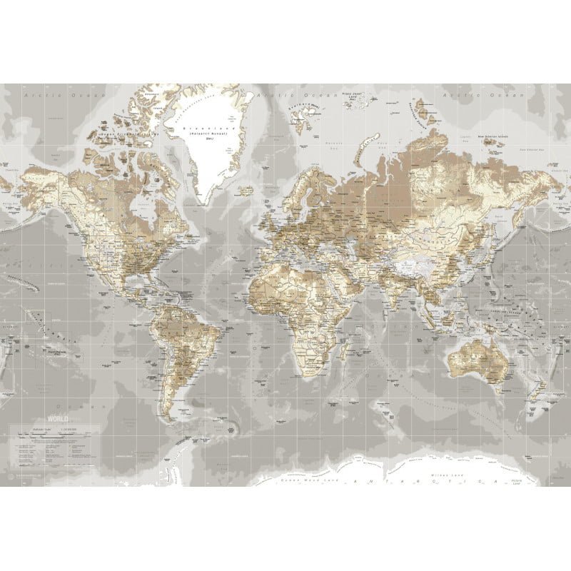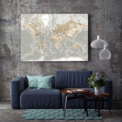 Iøjefaldende og stilrent verdenskort i topkvalitets lærred og detaljeret print.