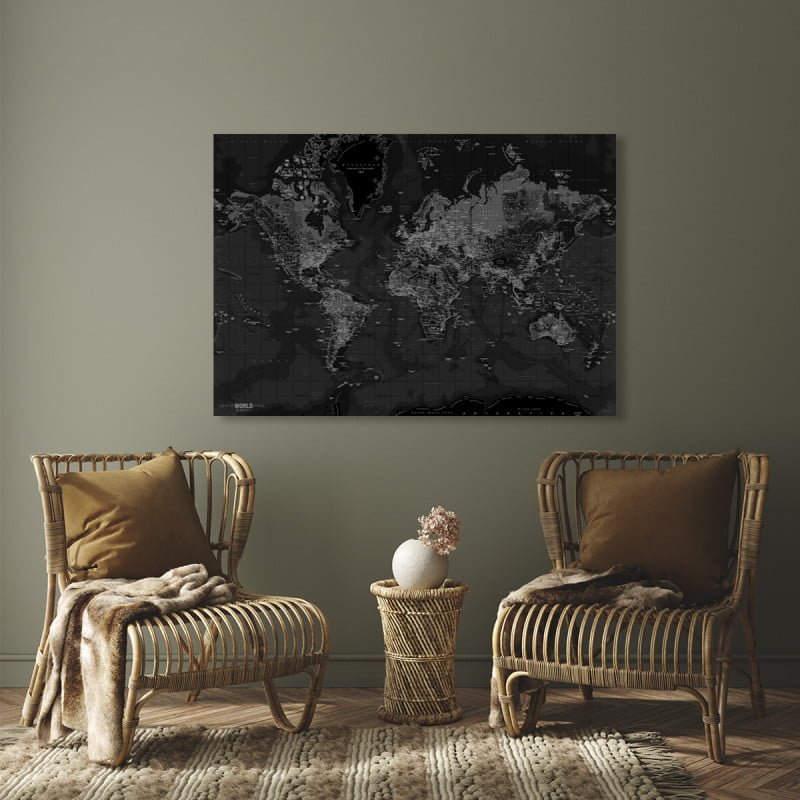 Iøjefaldende og tryllebindende verdenskort i topkvalitets lærred og detaljeret print.