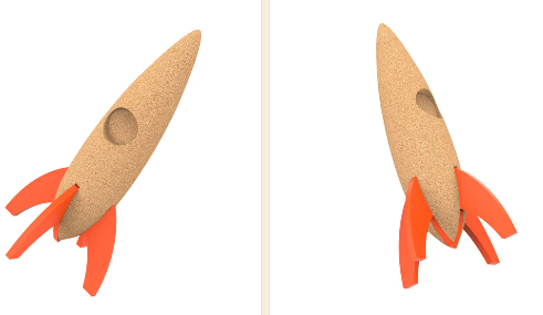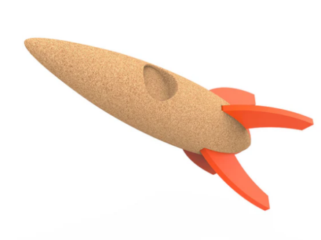 Legetøjsraketten er udført af bæredygtigt, økologisk kork og gummi.