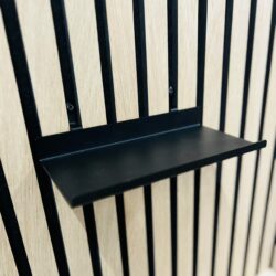 MDF: Sort gennemfarvet FSC Certificeret. Vi anbefaler man limer afslutningslisten direkte på væggen, op mod det løse filt i den ene side af panelet. Kan også skrues op, men disse vil være synlige.