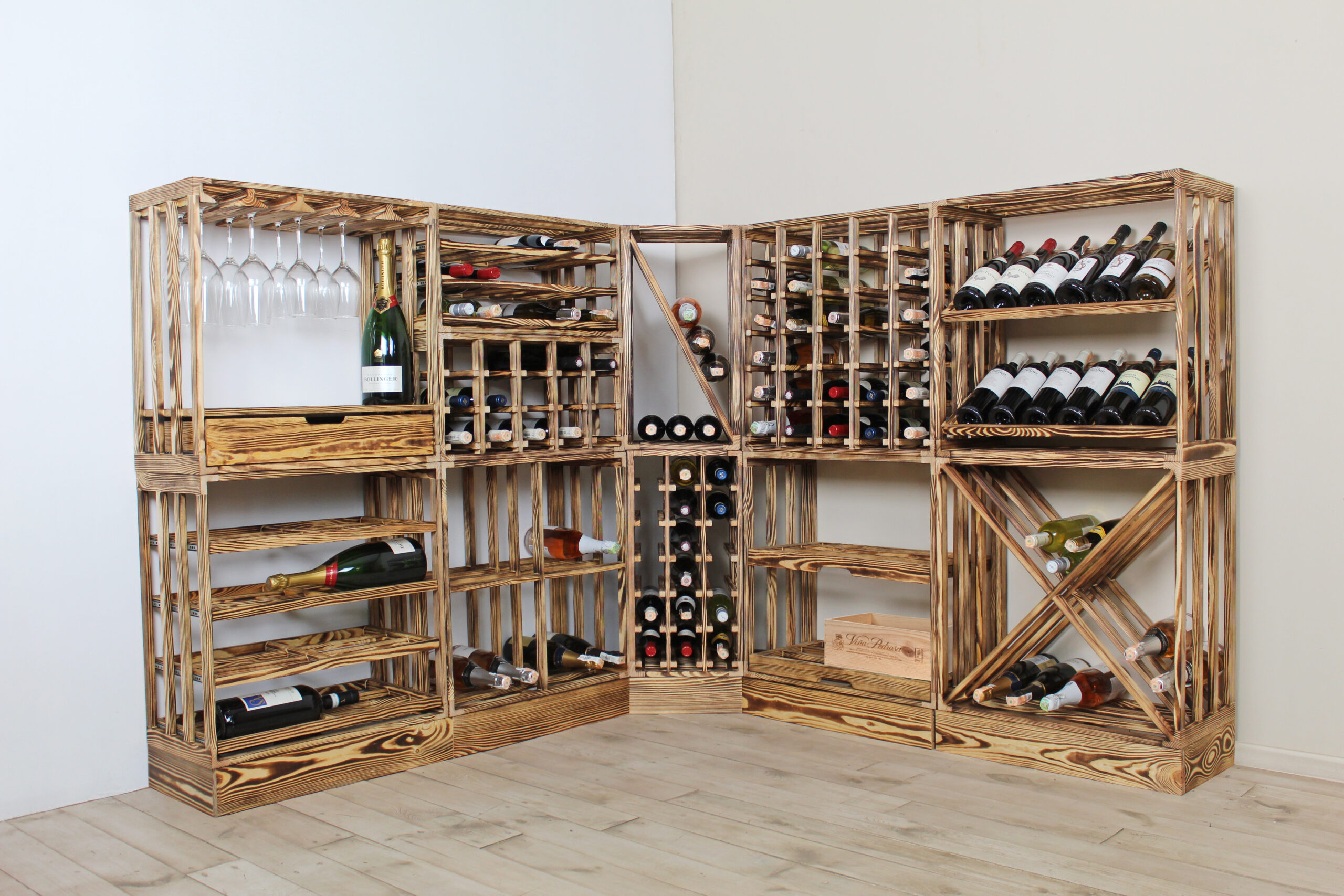 Ønskes der mere end én vinreol, kan de stables ovenpå hinanden eller sættes ved siden af hinanden, så de passer nemt ind i dit opbevaringssystem, og hjælper dig med at spare plads.
