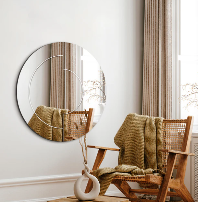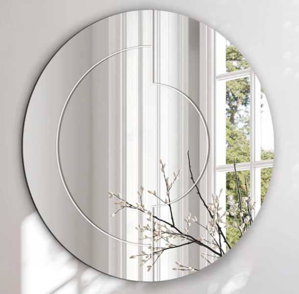 Det elegante runde spejl, Half Circles, er en sublim tilføjelse til dit hjem. Dets raffinerede design og skinnende overflade bringer et strejf af glamour ind i dine rum. Håndværksmæssigt skabt for at fange lyset på en fortryllende måde, tilføjer dette spejl en følelse af rummelighed og elegance til din indretning. Den delikate facetslibning fremhæver spejlets skønhed i det organiske mønster, der tilføjer en unik charme. Uanset om det er i gangen, soveværelset eller stuen, vil spejlet forvandle din indretning med sin enestående stil og glans.