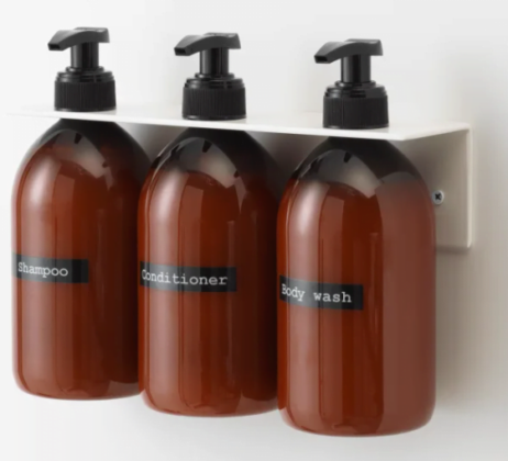 Velegnet i køkken og bad, slip for at have grimme flasker stående, hæld shampoo m.v. i pæne flasker, og hæng dem op på væggen.