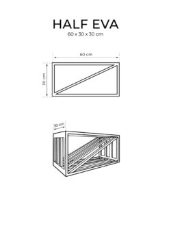 Half Eva-modulet kan både placeres stående og liggende, og er opdelt i to lige store rum, der hver især kan rumme 9 flasker af standard størrelse. Dermed i alt 18 flasker.