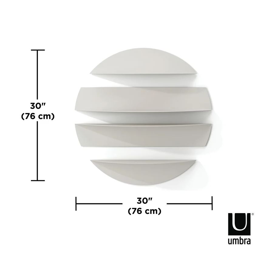 De mindre hylder har en bæreevne på op til 4,5 kg, mens de store hylder kan bære op til 6,8 kg. Sættet måler samlet 76 x 76 x 19 cm og leveres med alt nødvendigt monteringsudstyr, så du hurtigt kan hænge hylderne op.