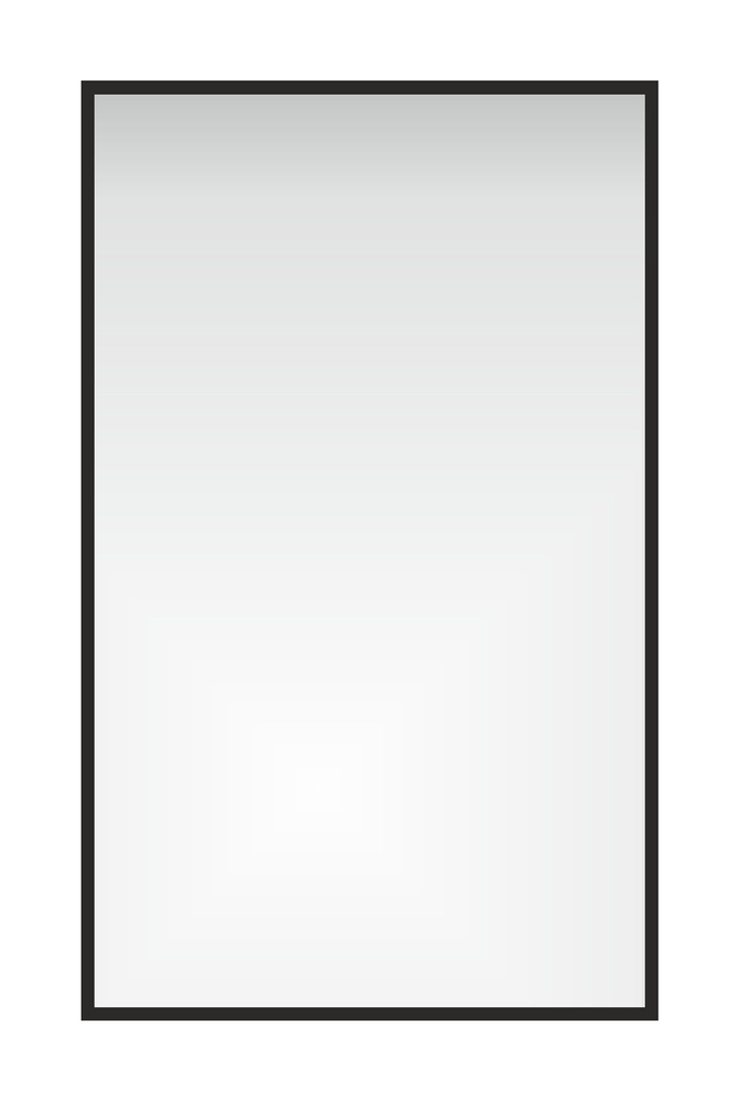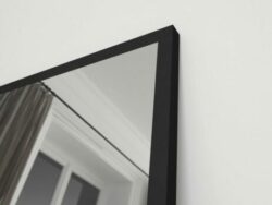 Dette elegante firkantede spejl måler 180 x 70 cm og er indrammet i en slank, sort aluminiumsramme.