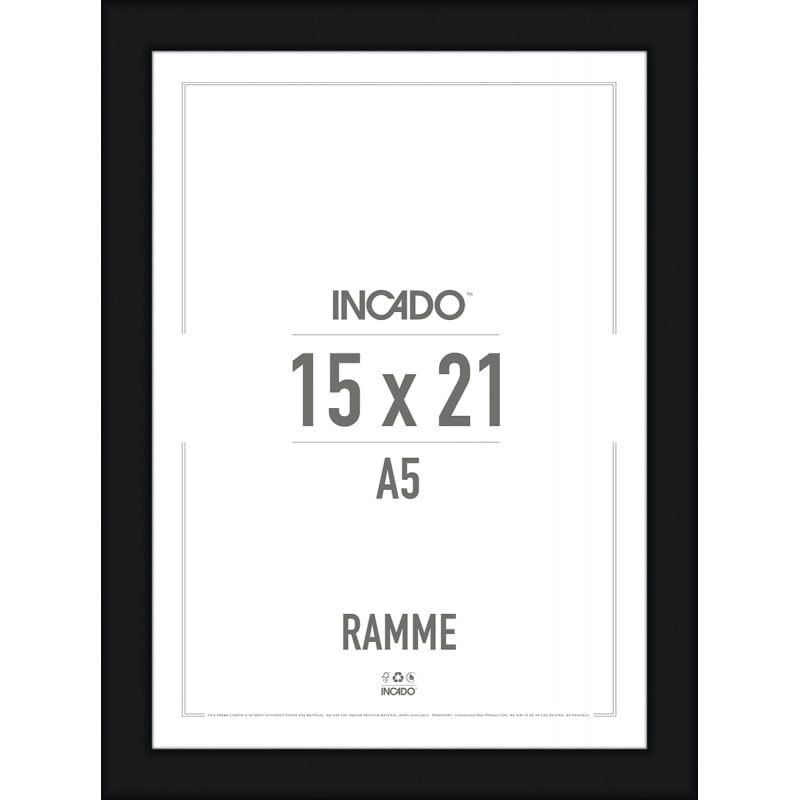 Rammen, som fås i flere størrelser er lavet af fyrretræ beklædt med sort folie. Målene på rammen henvender sig til selve glasset. Se målene på rammen under billeder.