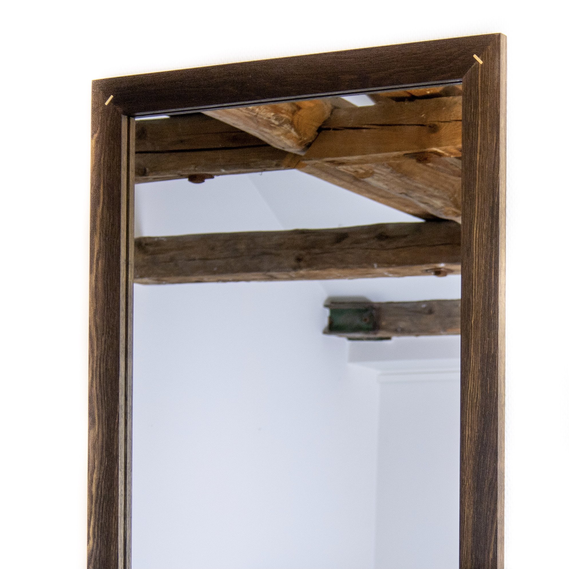 Hos Rune-Jakobsen finder du ingen finér eller laminat. Alle MIRROR rammerne fremstilles af 50 x 22mm massiv egetræ, røget eg eller valnød med den flotte messingsignaturdetalje i hjørnesamlingerne.