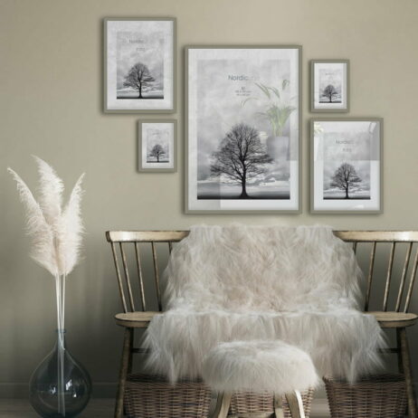 Denne moderne ramme oser af nordisk indretning og er ideel at bruge til en moderne billedvæg ved at kombinere de forskellige rammestørrelser.