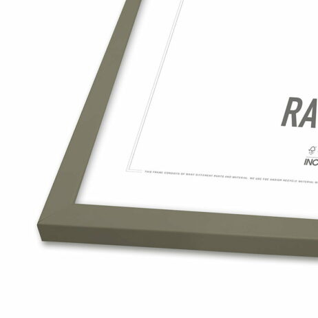 Rammen, som fås i flere størrelser er lavet af fyrretræ beklædt med støvet grøn folie. Målene på rammen henvender sig til selve glasset. Se målene på rammen under billeder.