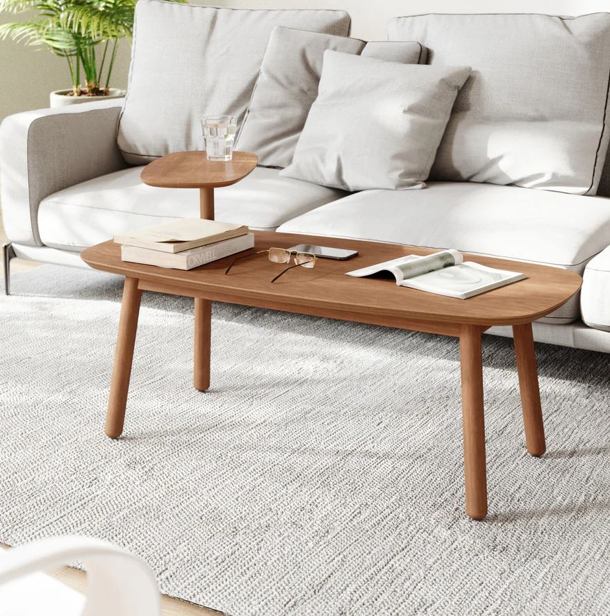 Det ægte træfinish og de bløde kurver tilføjer et moderne præg til din stue.