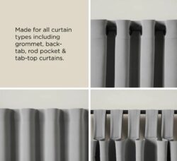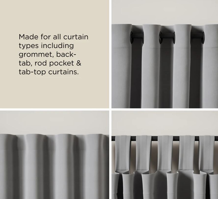 Bellwood gardinstangen har en diameter på 2,5 cm og kan teleskopisk udvides fra 107-305 cm, hvilket passer til vinduer på 86-284 cm.