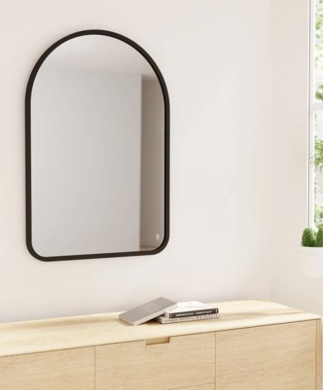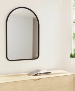 Dette buede spejl er endnu et medlem af Hub-familien. Spejlet er buet foroven og giver dermed noget ekstra blødhed til dine omgivelser. Det sorte gummi, der omkranser spejlet, giver et moderne touch samt beskyttelse.