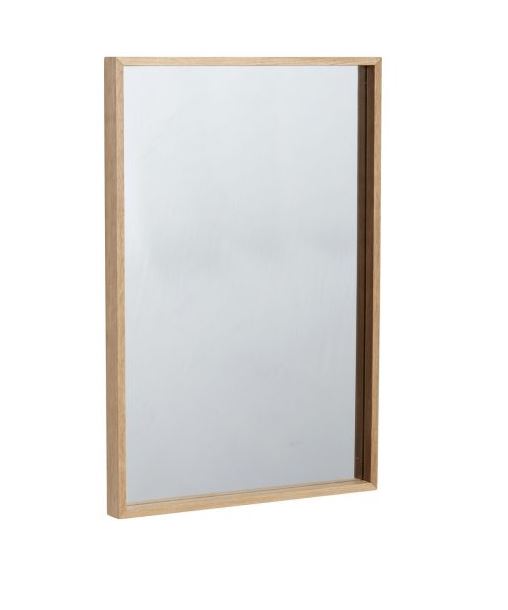 Spejlets ramme er lavet af eg finer og eg træ, hvilket giver det et naturligt og organisk udseende. Denne kombination af materialer tilføjer varme og elegance til spejlet og gør det til en stilfuld indretning i ethvert rum.